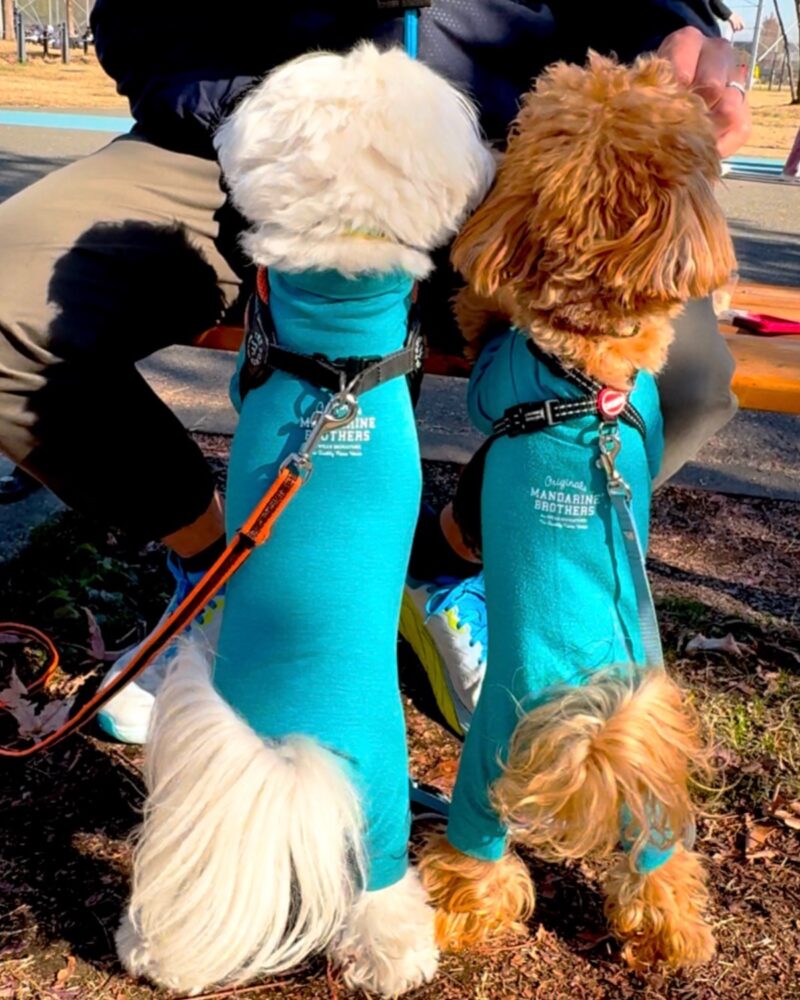 兄弟犬でMANDARINE BROTHERSのウェアをおそろいにしてみました。